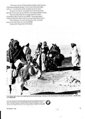 While leafing through some old motorcycle magazines owned by a friend we took note of some of the wonderfully entertaining and educational vintage BMW advertising art and photography. Accordingly, we have added yet another web page to our site, this one to offer some of this art and photography for the enjoyment of all visitors. We find it to be a pleasant, although all too brief, return to a simpler and safer time.